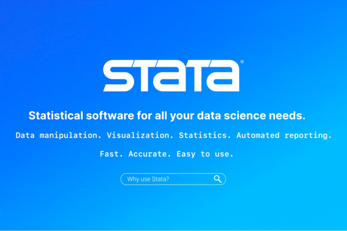 STATA est un outil d'analyse statistique offrant un environnement de travail convivial et permettant de réaliser aussi bien des analyses statistiques que des représentations graphiques complexes des données. Contrairement à un logiciel comme SPSS, qui dispose de nombreux menus déroulants permettant d'exécuter directement des procédures statistiques, dans STATA il faut écrire les commandes et les exécuter. Néanmoins, STATA est mieux adapté que SPSS à des analyses complexes, comme l'analyse de survie ou de données longitudinales, et la qualité de ses manuels de référence est exemplaire.